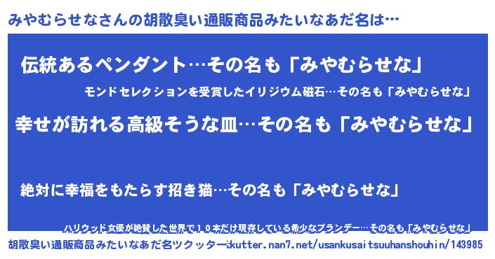 | 意味不明あだ名 | 『みやむらせなフォーエバー』 |