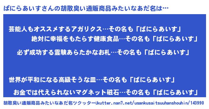 | 伝説のあだ名 | 『伝説のスナイパーばにらあいす』 |
