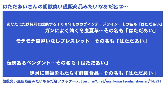 | ヘコむあだ名 | 『はたにー』『はただあい(笑)』 |