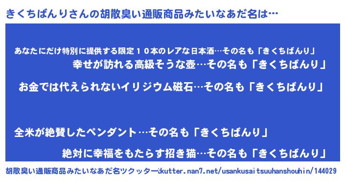 | 男性向けラノベタイトル風あだ名 | 『ノーゲーム・ノーキクチバンリ』 |