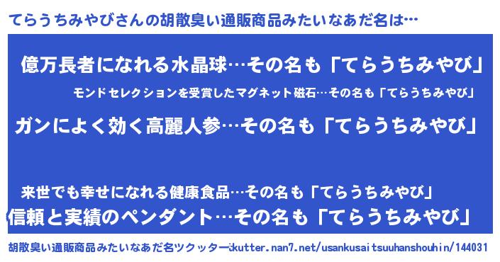 | 意味不明あだ名 | 『自称てらうちみやび』 |
