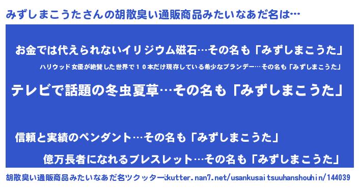 | 意味不明あだ名 | 『自称みずしまこうた』 |