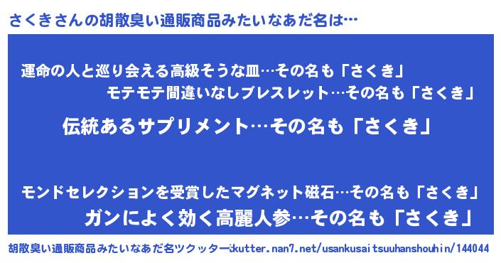 | 意味不明あだ名 | 『とにかく怪しいさくき』『自称さくき』 |