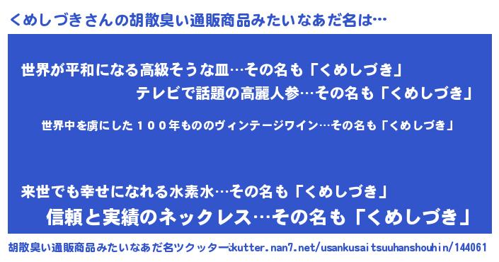 くめしづきさんの胡散臭い通販商品みたいなあだ名をツクッター!