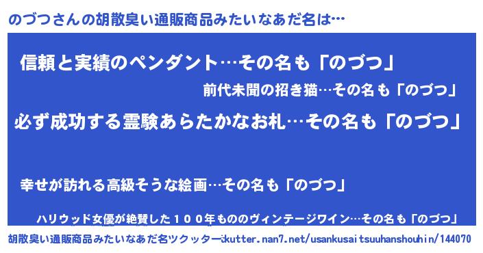 | 男性向けラノベタイトル風あだ名 | 『のづつの憂鬱』『はたらくのづつさま!』 |