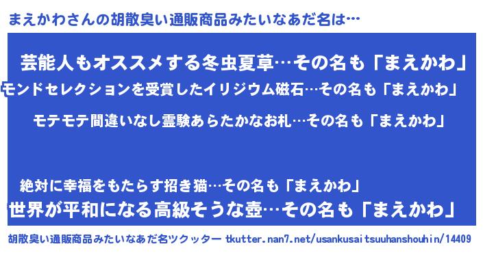 | 意味不明あだ名 | 『ペロリンまえかわ』『自称まえかわ』 |