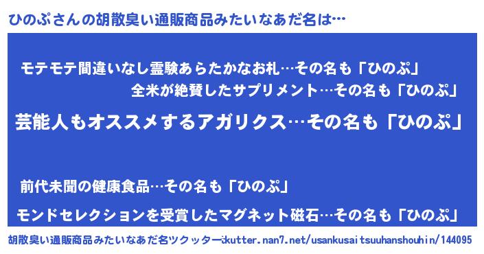 | 意味不明あだ名 | 『自称ひのぷ』『ペロリンひのぷ』 |