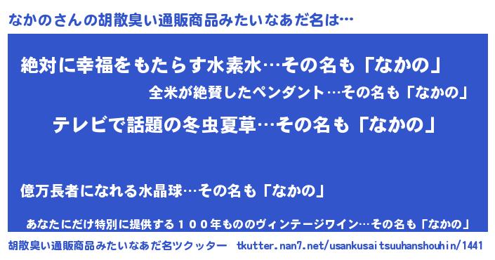 | 意味不明あだ名 | 『自称なかの』『つくし科なかの属』 |