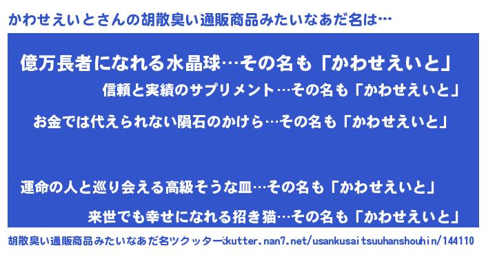 | ヘコむあだ名 | 『かわっふぃ~』『かわせえいと(遠い目)』 |