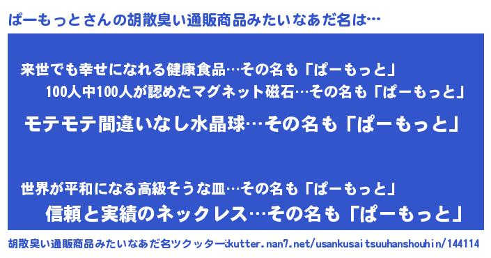 | ヘコむあだ名 | 『ぱーにゅー』『ぱーもっと(笑)』 |