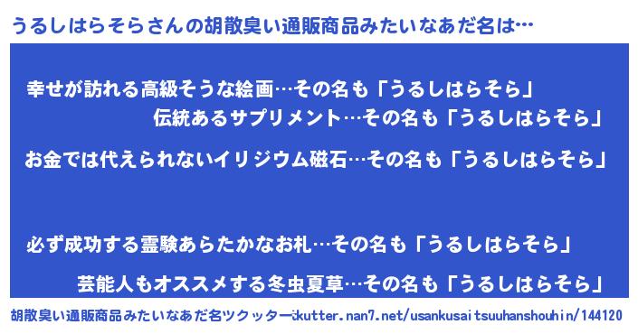 | ヒーロー風カッコイイあだ名 | 『慈愛の使者うるしはらそら』 |