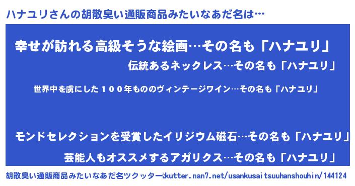 | 男性向けラノベタイトル風あだ名 | 『この素晴らしい世界にハナユリを!』 |
