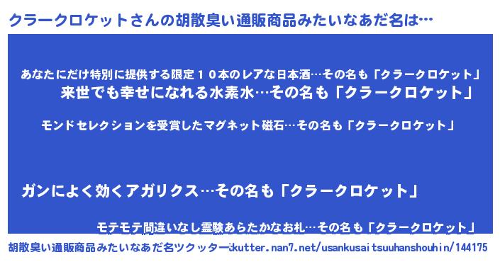 | ヘコむあだ名 | 『クラにー』『クラークロケット(苦笑)』 |