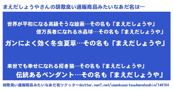 | 欧米人風あだ名 | 『ケンブリッジまえだしょうや』 |