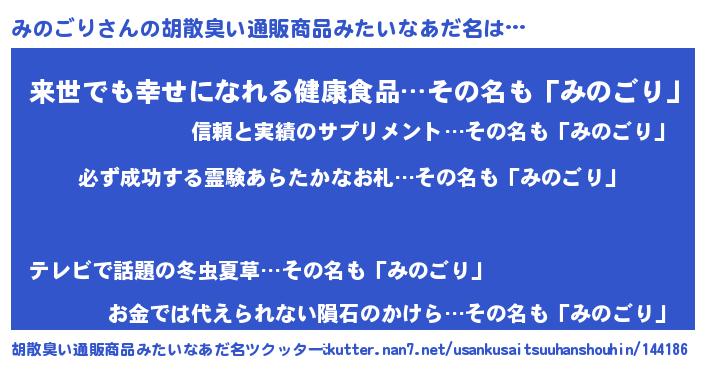 | ヘコむあだ名 | 『みのもー』『みのごり(笑)』 |