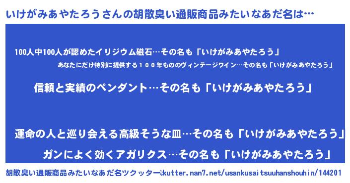 | 肩書あだ名 | 『いけがみあやたろうリーダー』 |