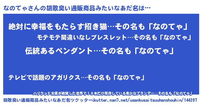| 女子向けラノベタイトル風あだ名 | 『なのてゃの卵を拾いまして』 |