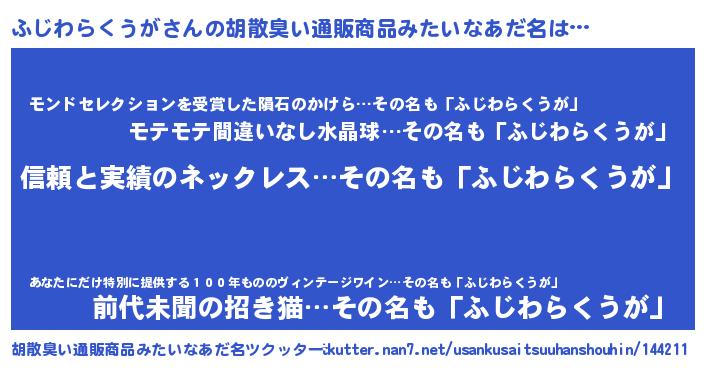 | 意味不明あだ名 | 『めかぶ科ふじわらくうが属』 |