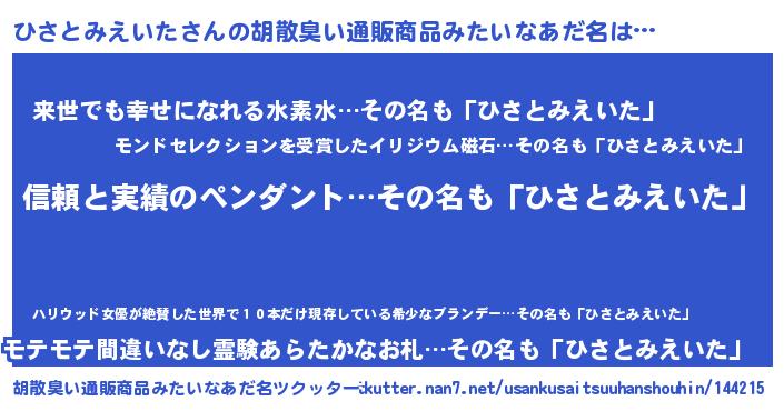 | 意味不明あだ名 | 『とにかく怪しいひさとみえいた』 |