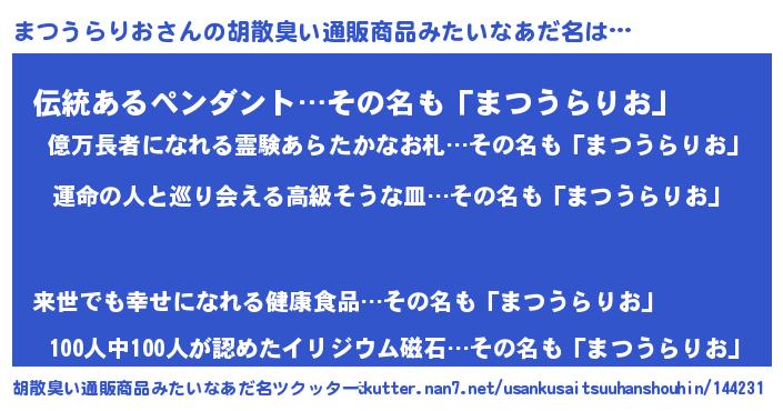 | 肩書あだ名 | 『まつうらりお国家主席』 |
