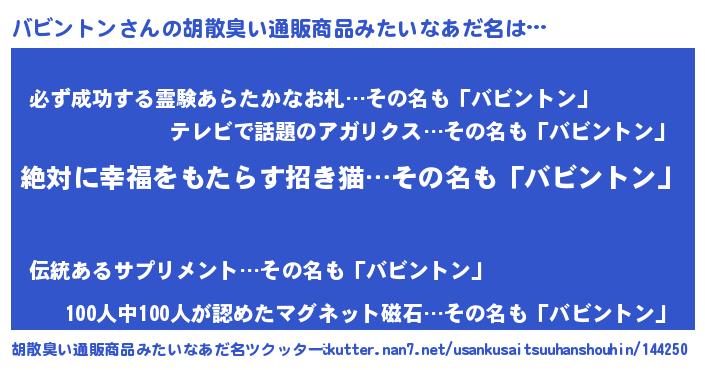 | ヘコむあだ名 | 『バビントン(笑)』『バビっふぃ~』 |