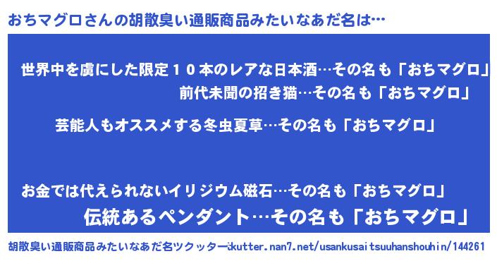 | 意味不明あだ名 | 『自称おちマグロ』『永久保存おちマグロ』 |