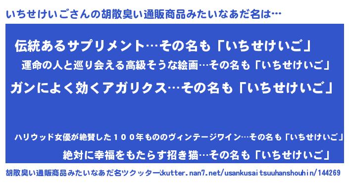 | 意味不明あだ名 | 『自称いちせけいご』 |