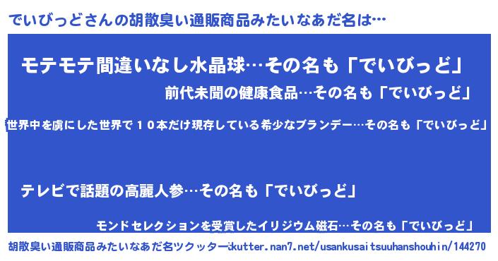 ヘコむあだ名 | 『でいっふぃ~』『でいびっど(笑)』 |