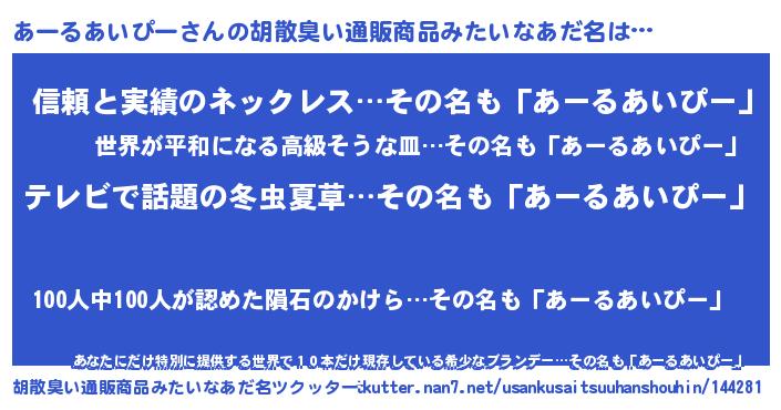 | 意味不明あだ名 | 『自称あーるあいぴー』 |