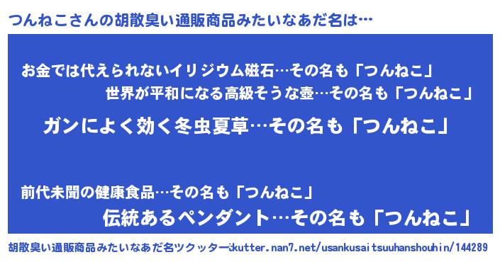 | ヒーロー風カッコイイあだ名 | 『ウルトラ戦士ツンネコ』『幻影騎士ツン』 |