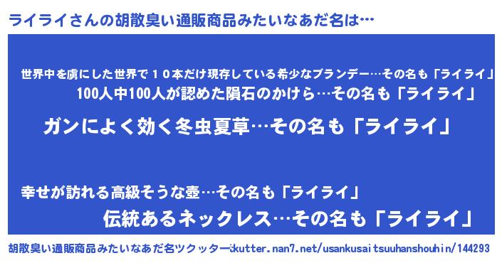 | 意味不明あだ名 | 『自称ライライ』『なめこ科ライライ属』 |
