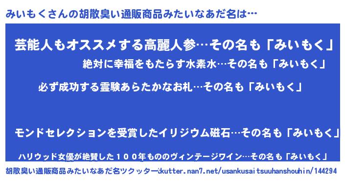| 意味不明あだ名 | 『ペロリンみいもく』『自称みいもく』 |