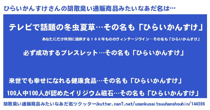 | 男性向けラノベタイトル風あだ名 | 『ひらいかんすけの憂鬱』 |