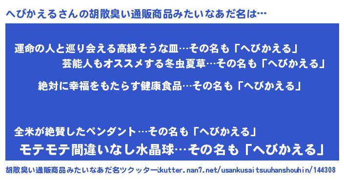 | 意味不明あだ名 | 『永久保存へびかえる』『自称へびかえる』 |