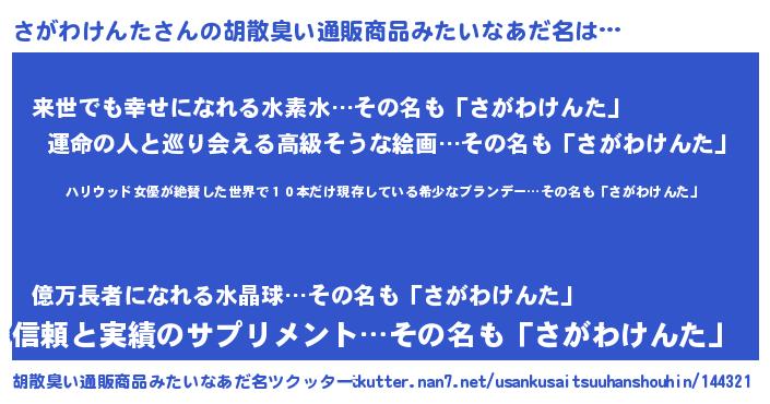 | ヘコむあだ名 | 『さがわけんた(遠い目)』『さがっぺ』 |