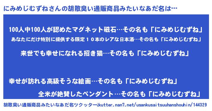 | ヘコむあだ名 | 『にみめじむずね(笑)』『にみを』 |