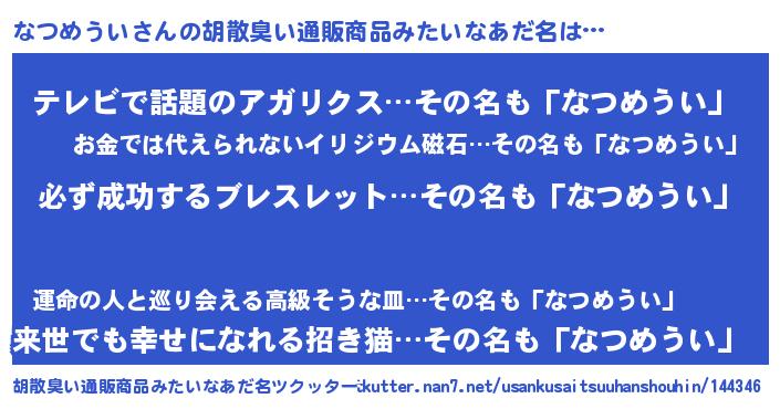 | ヘコむあだ名 | 『なつふぇ~』『なつめうい(笑)』 |