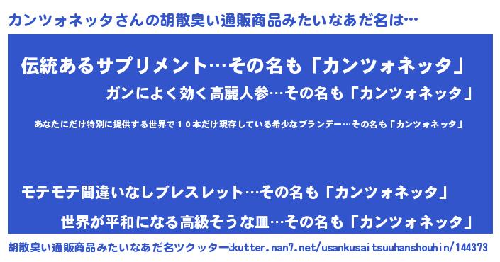 | 意味不明あだ名 | 『住所不定無職カンツォネッタ(95歳)』 |