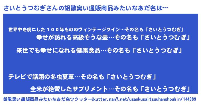 | 意味不明あだ名 | 『永久保存さいとうつむぎ』 |