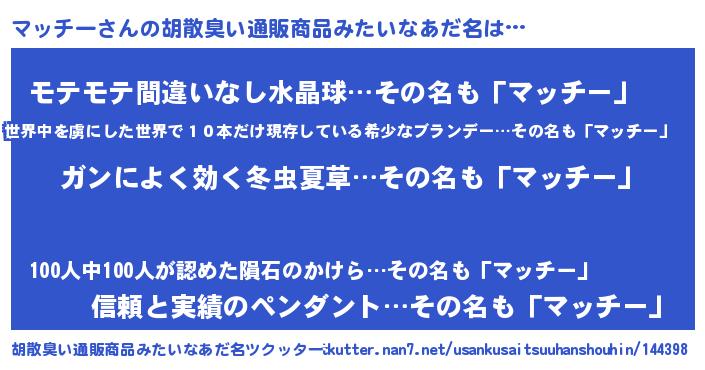 | 女子向けラノベタイトル風あだ名 | 『マッチーアンティーク』 |