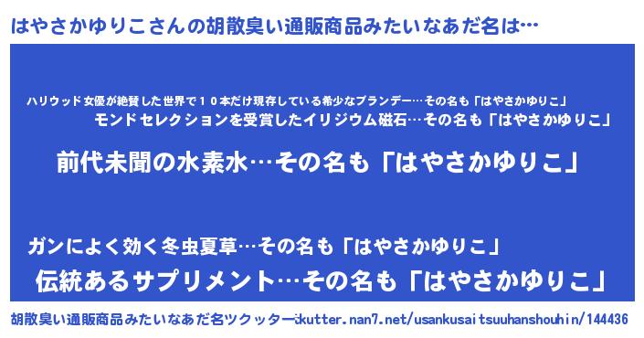 | 意味不明あだ名 | 『永久保存はやさかゆりこ』 |
