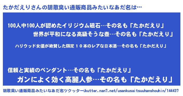 | 意味不明あだ名 | 『住所不定無職たかだえり(40歳)』 |
