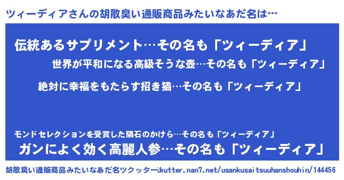 | 意味不明あだ名 | 『永久保存ツィーディア』 |