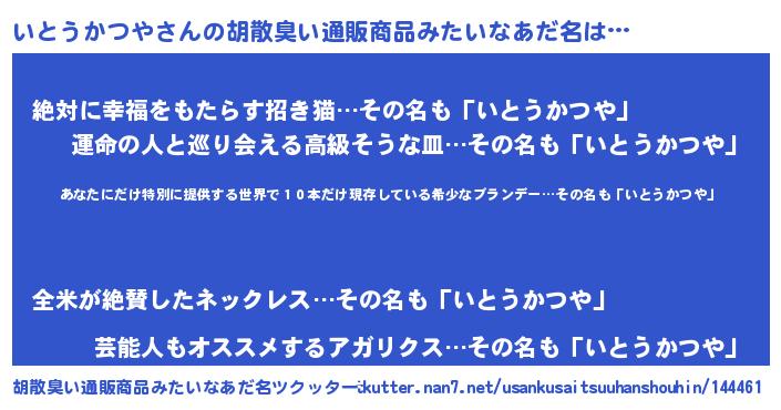 | 意味不明あだ名 | 『住所不定無職いとうかつや(84歳)』 |