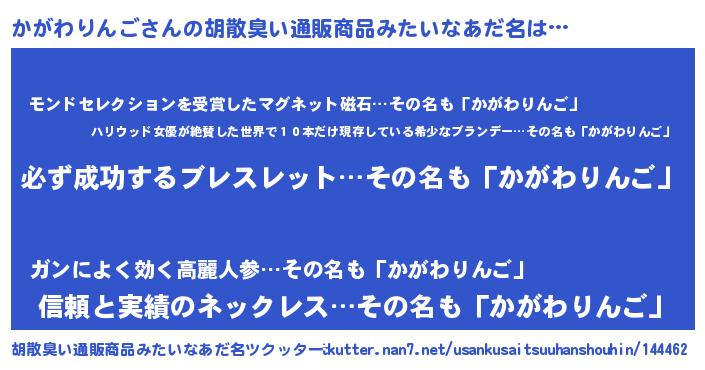 | 男性向けラノベタイトル風あだ名 | 『かがわりんごの憂鬱』 |
