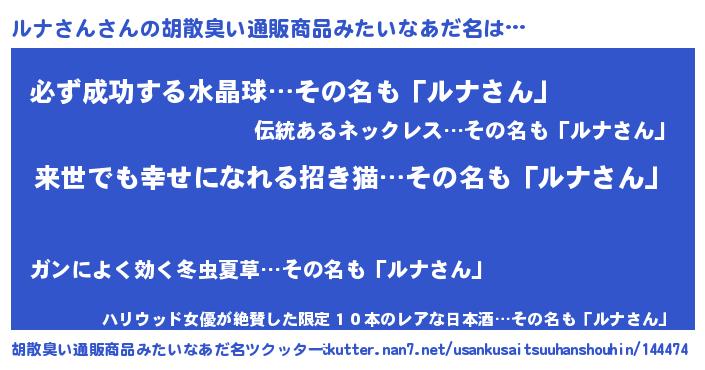 | 男性向けラノベタイトル風あだ名 | 『冴えないルナさんの育てかた』 |