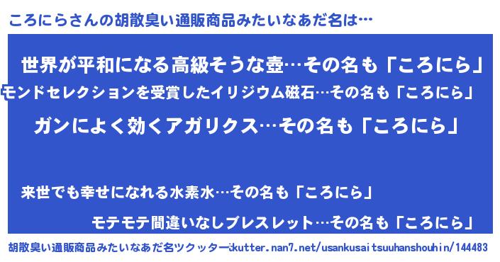 | 意味不明あだ名 | 『自称ころにら』『ころにらフォーエバー』 |