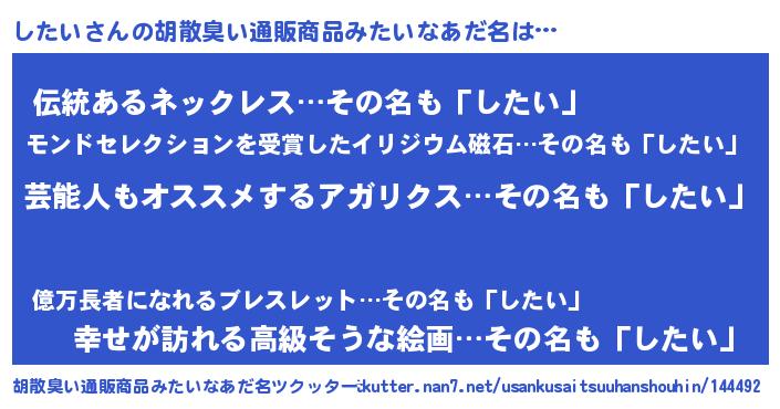| ヒーロー風カッコイイあだ名 | 『究極戦士シタイ』『魔戒騎士シタ』 |
