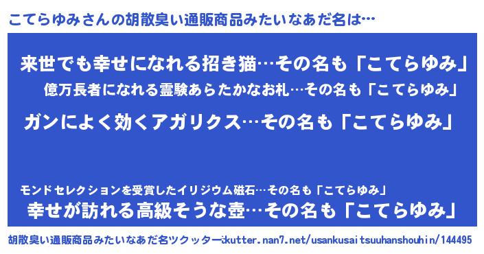 | ヘコむあだ名 | 『こてらゆみ(笑)』『豆乳』 |