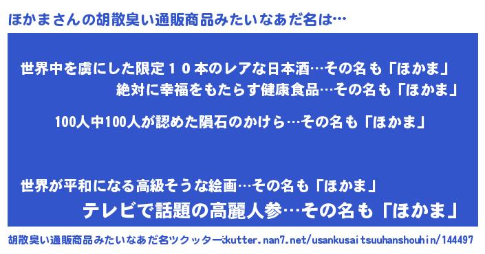 | ヘコむあだ名 | 『ほかま(苦笑)』『豆乳』『ほかお』 |